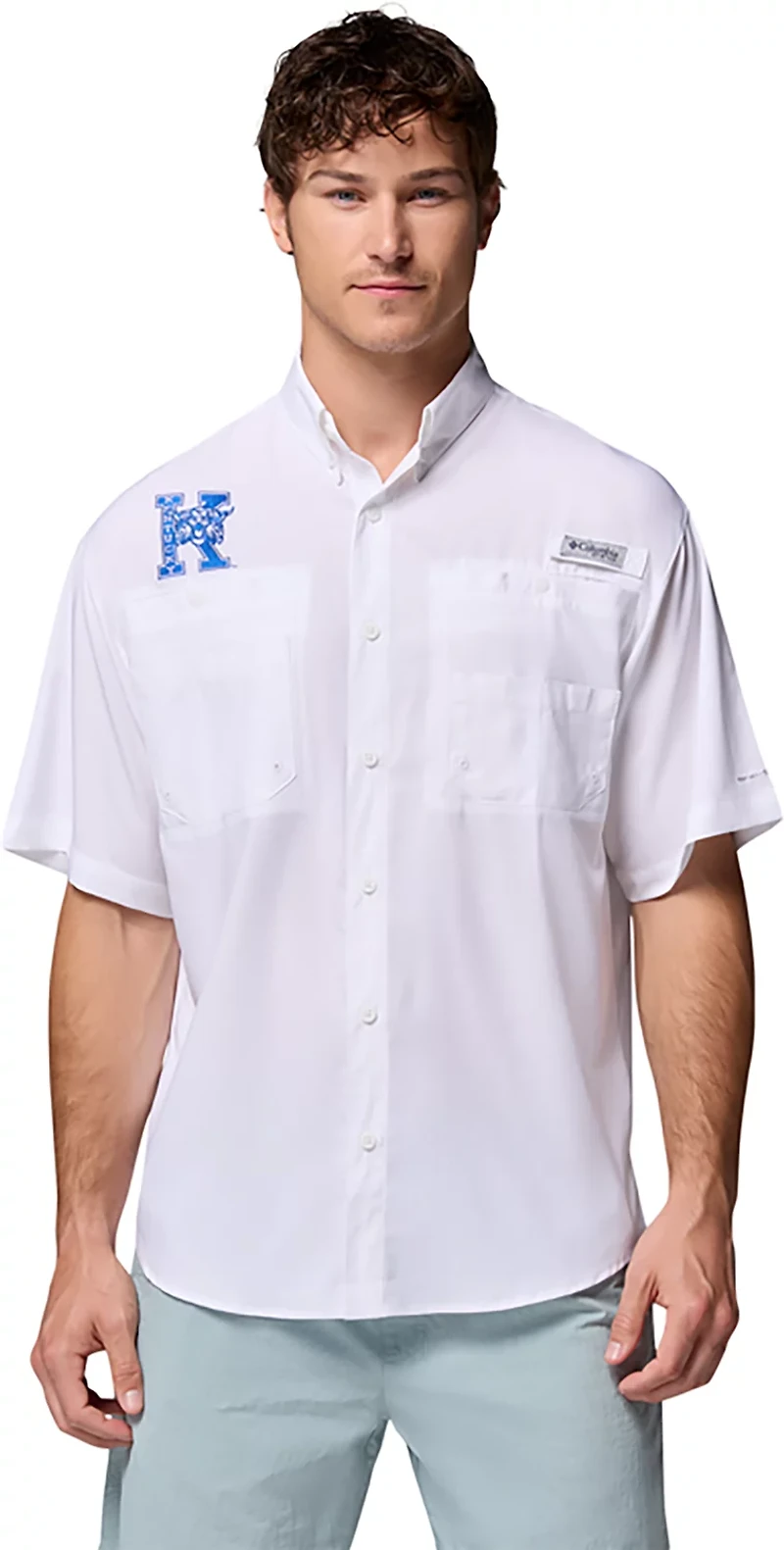 Gear up for game day with the Columbia Sportswear Men's University of Kentucky CLG Tamiami Vault Logo Button Up Shirt. The polyester material provides a comfortable feel, while the Omni-Wick technology helps keep you cool and dry. Built-in Omni-Shade UPF 40 sun protection shields against harmful UVA/UVB rays, and the embroidered school logo shows off your Wildcats pride.