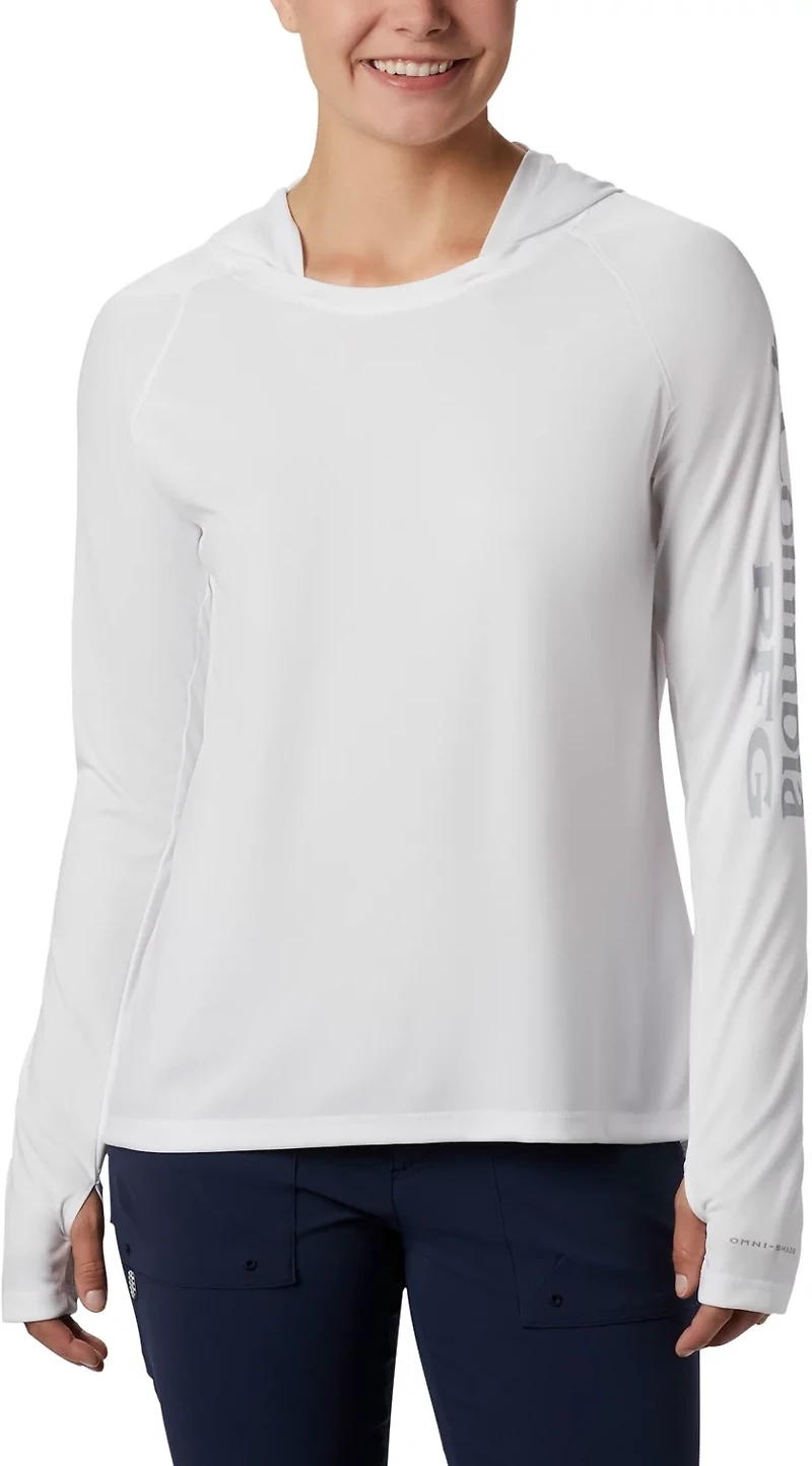 With quick-drying, comfortable construction, the Columbia Sportswear Women's PFG Tidal Tee Hoodie is a great choice for your next outdoor expedition. Omni-Wick™ fabric moves sweat and moisture away from your skin, while Omni-Shade® tech offers UPF 50 sun protection.