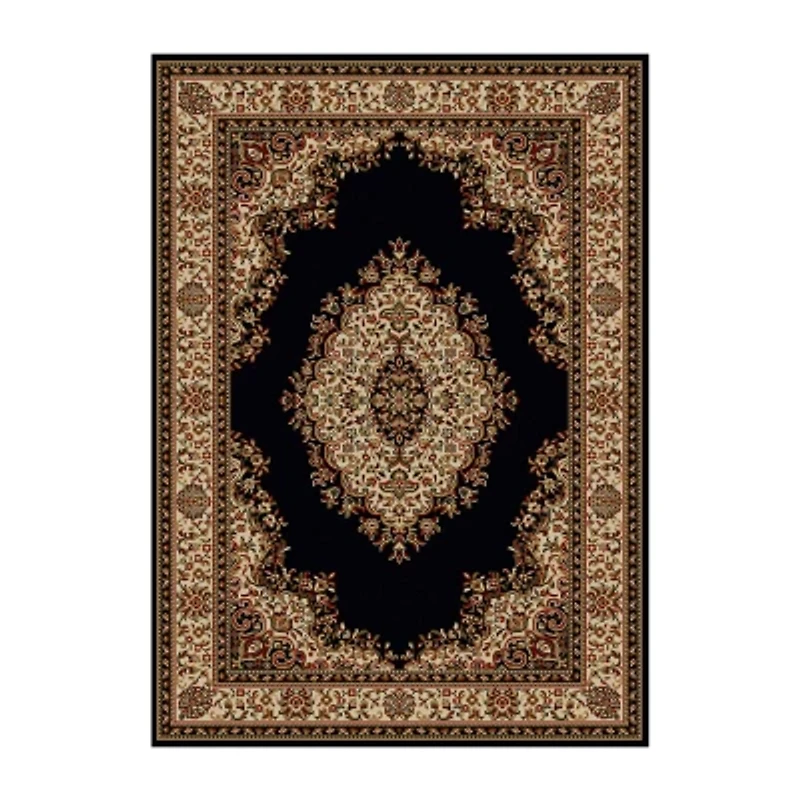 This timeless floral medallion design is a transitional pattern filled with large floral motifs to suit any space. The dominant black base is bordered by an intricate floral border to complete this transitional design machine made in Italy. Made of heat-set polypropylene, this rug provides a soft, non-shedding, durable, and easy to clean accent to the decor in your entryway, hallway, bedroom, playroom, dining room, or living room. A wide array of sizes and shapes, including rectangles, rounds, and runners, allows this machine made rug collection to fit in any space comfortably.
