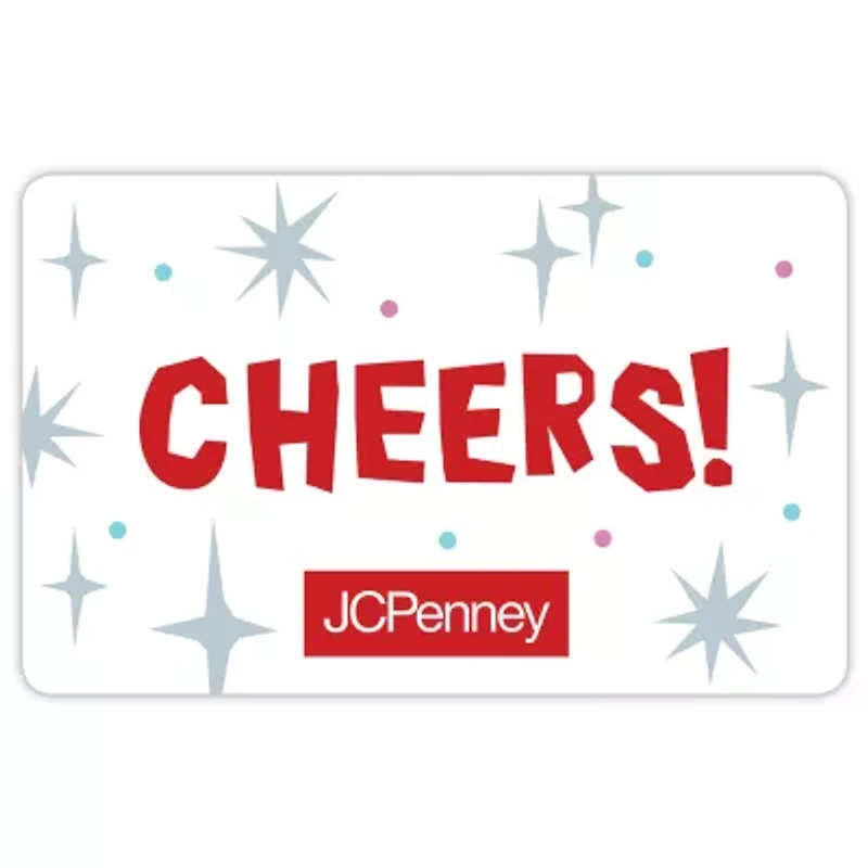 Congratulate a friend, family member or loved one for a special occassion or the holidays with this JCPenney gift card. Featuring a festive 'Cheers!' design, this gift card allows the recipient to pick their favorite pieces from JCPenney for the amount of your choosing.