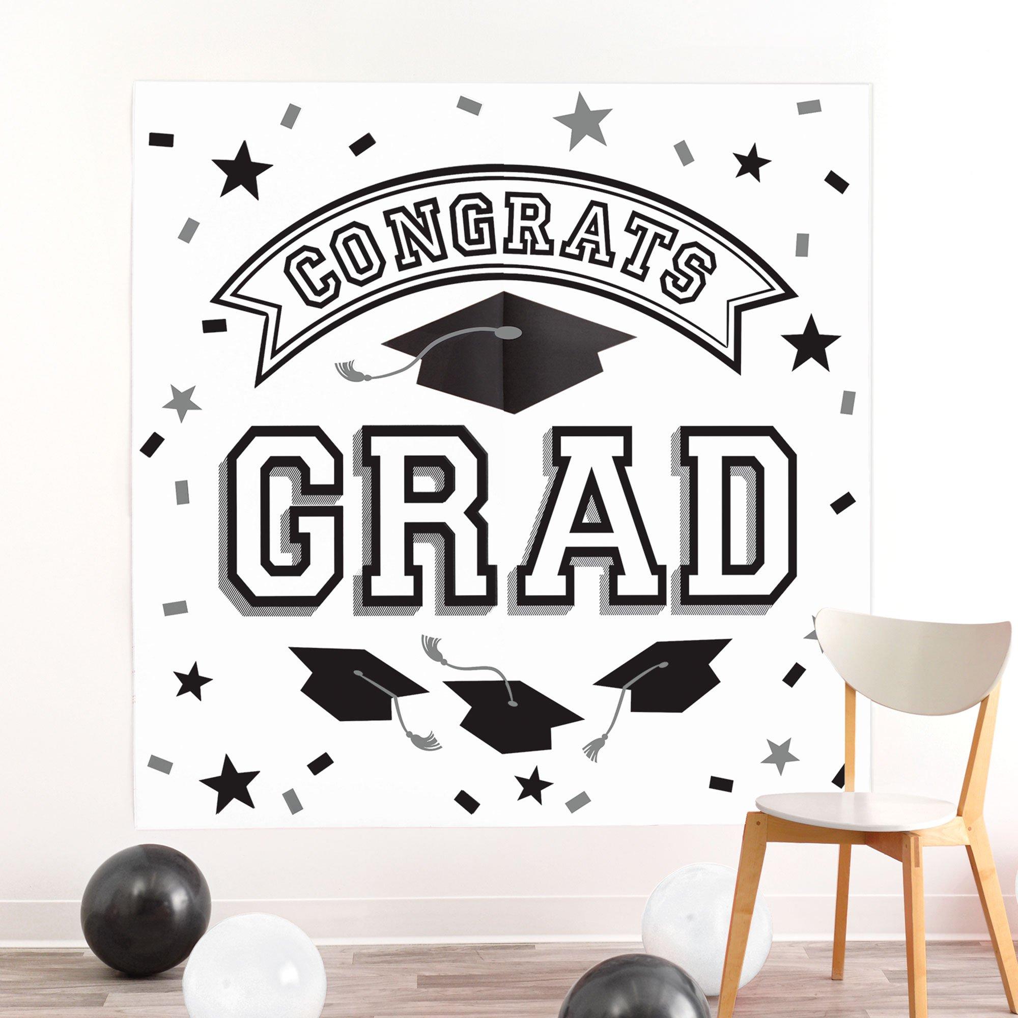 20" Black, Silver & Gold Stars Congrats Grad Balloon