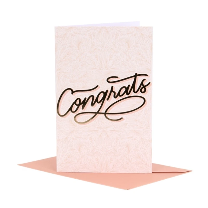 Celebrate every achievement, no matter how big or small, with the Congrats Greeting Card! Completed with a personal note, this card is sure to make that special someone smile. Card measures 8.25L x 5.4W in. Crafted of paper Botanical design Front features the text "Congrats" Hues of beige and gold Blank inside Care: Dust with a soft, dry cloth. Contact your local Kirkland's store for availability. Quantities and selection may vary by location.