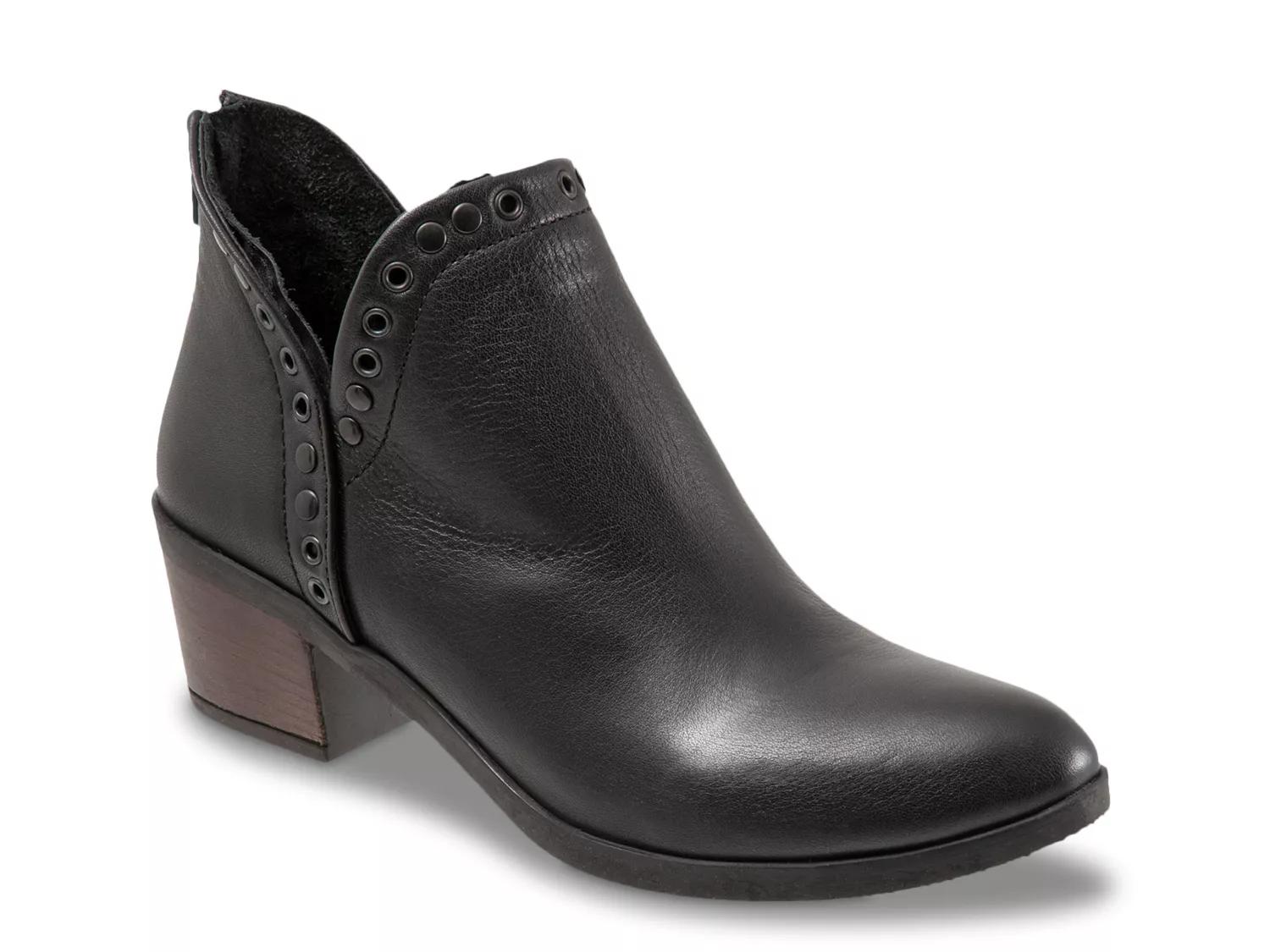 Add a subtle edge to your fall wardrobe in the Bueno Cora bootie. Subtly elevated with a block heel, this ankle bootie is styled with notched side details and stud accents for extra flair and back zipper for easy entry.