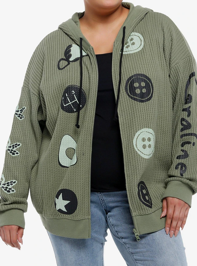 Coraline Buttons Girls Oversized Waffle Knit Hoodie Plus