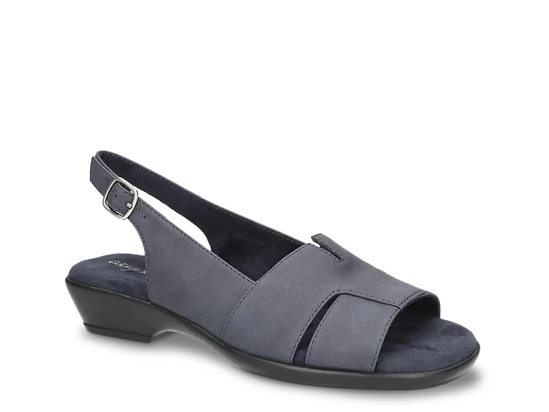 You'll love the timeless style and everyday ease of Corbett sandal from Easy Street. This slingback sandal pairs a V-throat banded design with a low block heel for a versatile look. A padded comfort footbed and lightweight, flexible outsole keep you moving with ease.