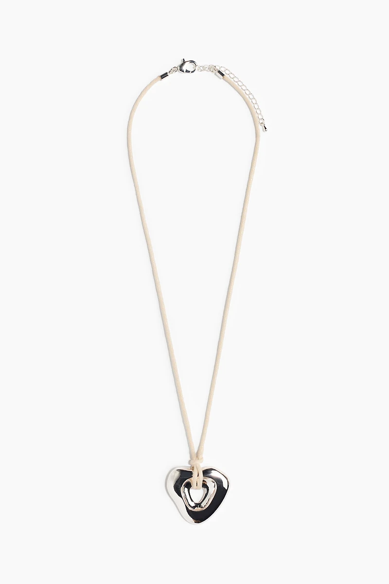 Cord necklace with an irregular-shaped heart pendant. Adjustable length with trigger clasp.