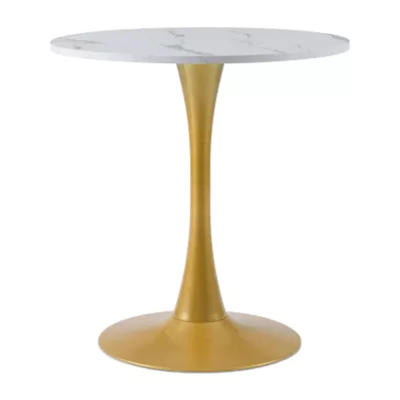 Are you ready to host everything from breakfast to dinner? This table is a stylish centerpiece for your dining room or eat-in kitchen ensemble. A sturdy white metal pedestal base with a circular marble-designed top adds style to your dining space. Its mixture of materials makes it ideal for both classic and contemporary aesthetics, while the marble top makes the perfect foundation for any table decor.