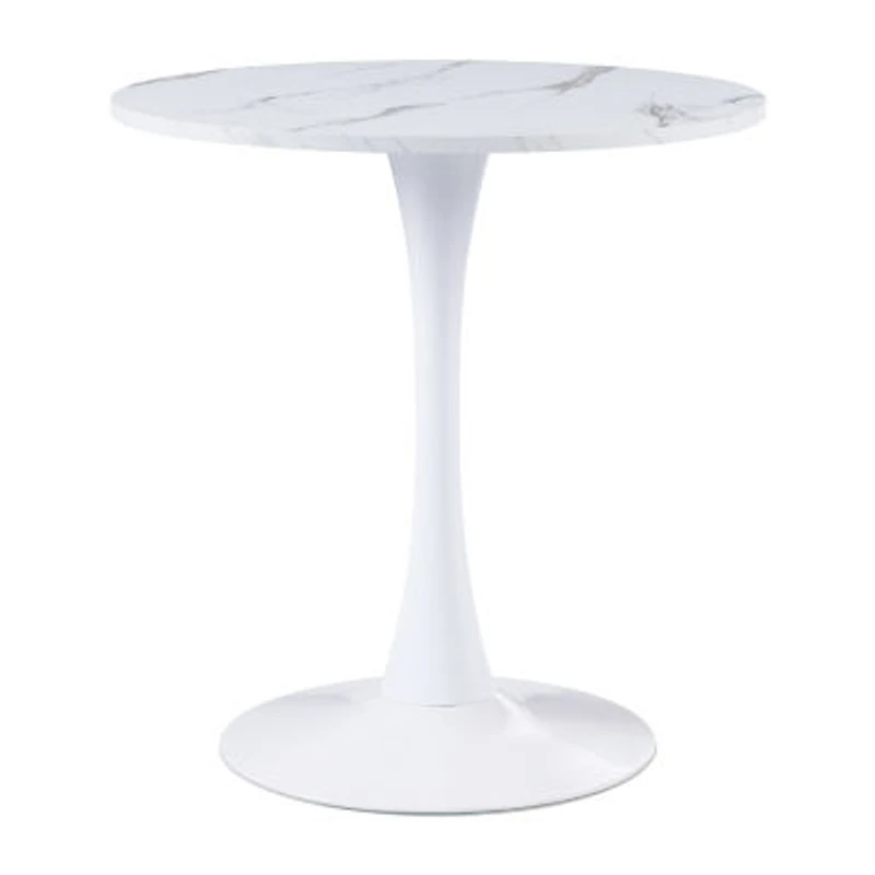 Are you ready to host everything from breakfast to dinner? This table is a stylish centerpiece for your dining room or eat-in kitchen ensemble. A sturdy white metal pedestal base with a circular marble-designed top adds style to your dining space. Its mixture of materials makes it ideal for both classic and contemporary aesthetics, while the marble top makes the perfect foundation for any table decor.