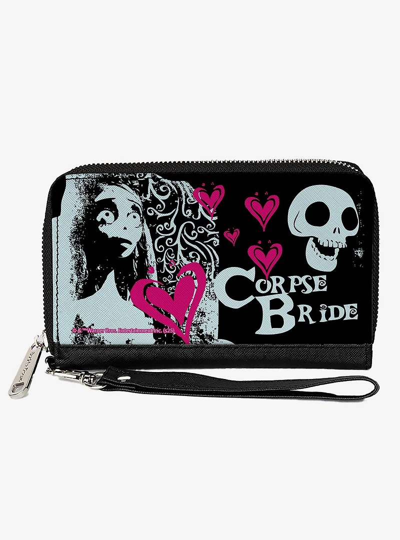 Corpse Bride Emily Hearts & Skull Zip Around Wallet
