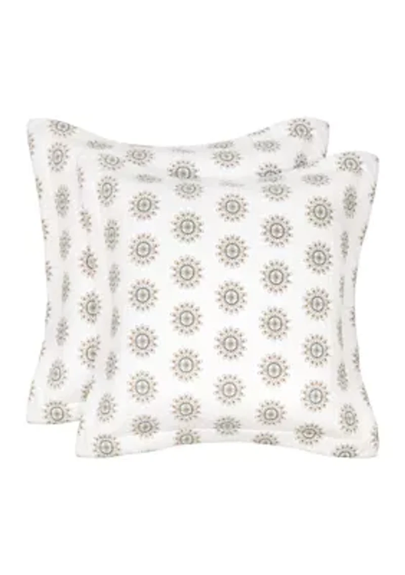 The Cosima euro shams are the perfect complement to the Levtex Home Cosima collection. This is the perfect accessory to add a layer of dimension and truly complete your bedroom. Sized at 26 x 26 in., the euro shams feature a delicate mini medallion in soft colors on cream. Made from 100% cotton, the Cosima euro shams are easy to care for. They come as a set of 2 without a filler. Set of 2 China Imported Product Specifications 26" L x 26" W + 2" flange Material & Care Quilted Cotton Machine washable
