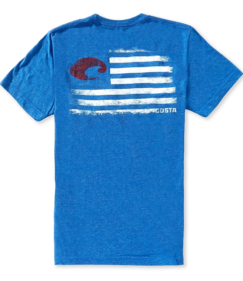 From Costa, this t-shirt features: Crew neckline Short sleeves Costa logo on the left side of chest American flag with Costa logo incorporated in graphic on back Square hem Pullover construction Polyester/cotton Machine wash/tumble dry Imported.