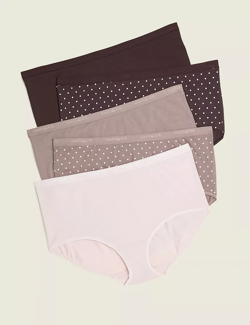 Available in Plus Size A pack of five full briefs in soft, stretchy cotton. Classic fit sits at the waist. Full coverage. Item Number #373991Cacique IntimatesImported Plus Size Panty ". Plus Size Cotton Full Brief Panty - 5-Pack, in Parisian Pink Pack, 22/24, Women's, Cacique for Lane Bryant