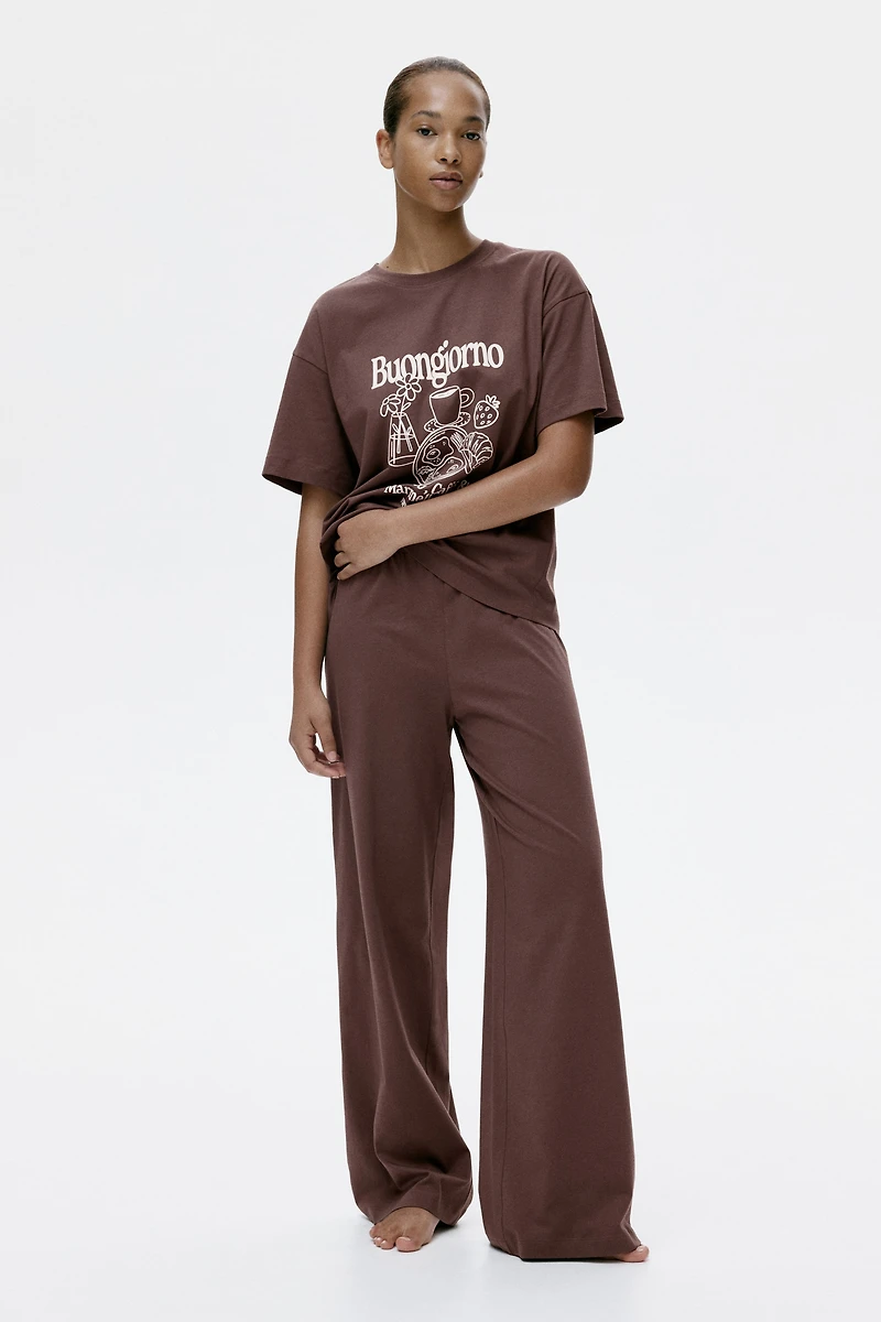 Pajamas in soft cotton jersey with a T-shirt and pants. T-shirt with a ribbed round neckline and dropped shoulders. Pants with an elasticized waistband.