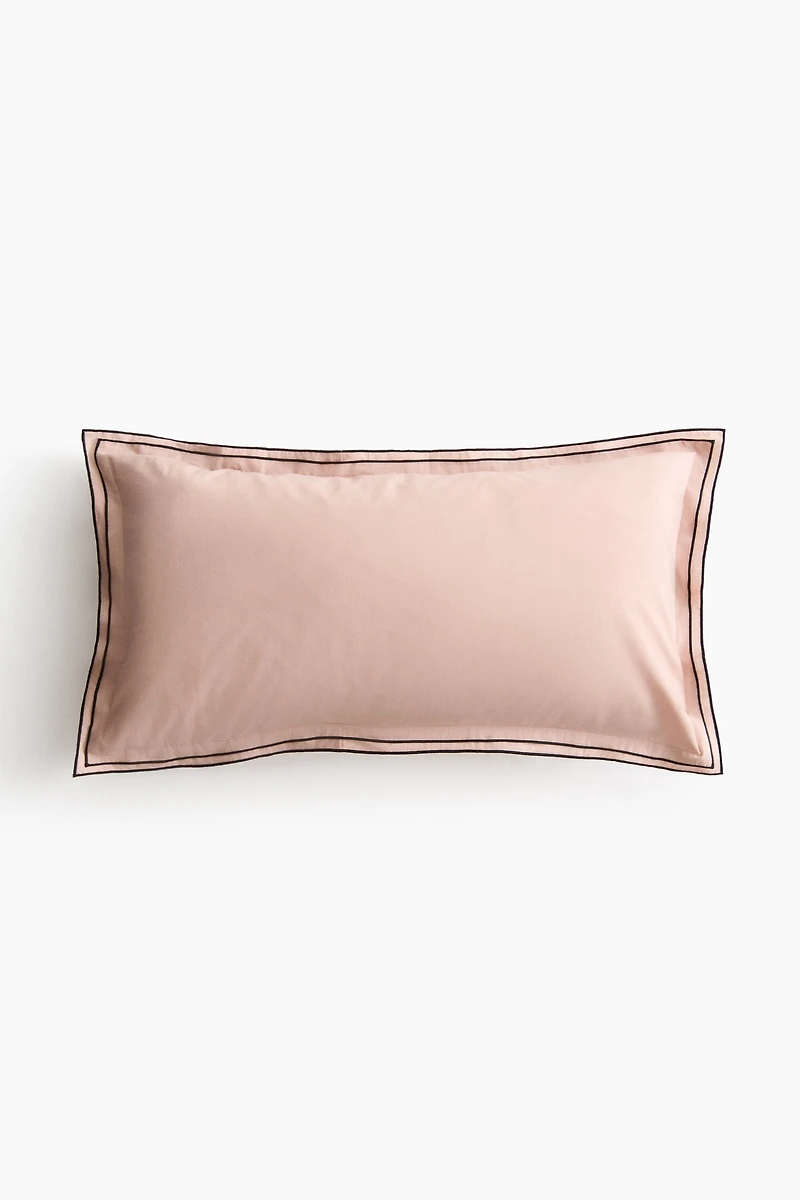 Pillowcase in soft woven cotton. Double-layered border with contrasting, overlocked edges. Envelope opening.