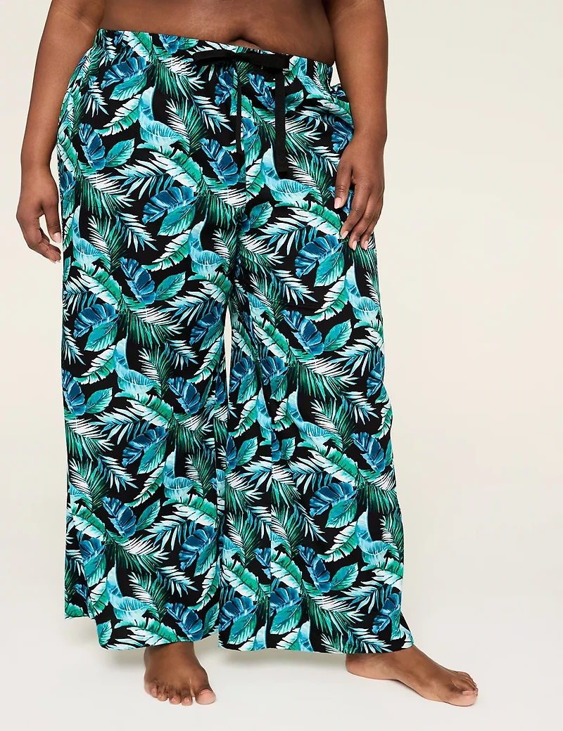 Available in Plus Size A sleep pant that makes bedtime something to look forward to - you'll love the easy wide leg silhouette and unbelievably comfy poplin fabric. FABRIC: Dreamy-soft, incredibly breathable cotton poplin Machine Wash 100% Cotton FIT: Relaxed fit pants Inseam: 29" FEATURES: Elastic waist with drawstring Pockets Item Number #411098 Imported Plus Size Sleepwear Cacique Intimates ". Plus Size Cotton Poplin Wide Leg Pants, in Watercolor Palms Pitch Black, 14/16, Women's, Cacique for Lane Bryant