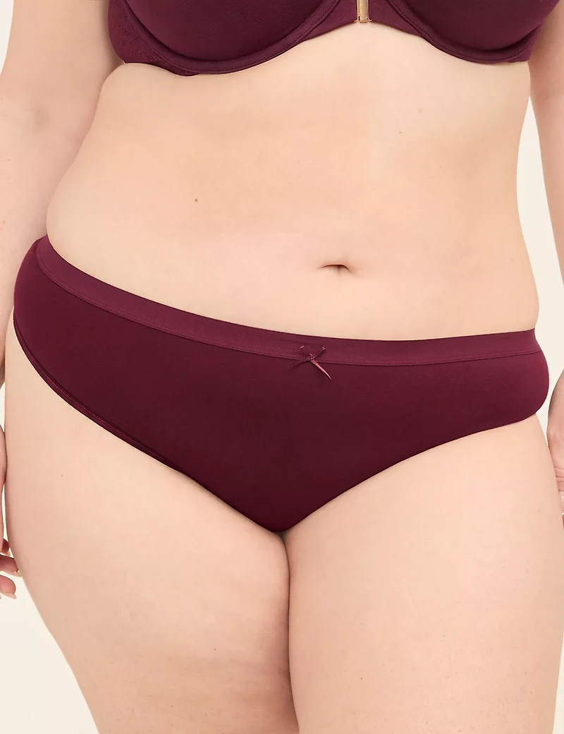 Available in Plus Size A thong in soft, comfy cotton with eyelet lace overlay at the sides. Low rise. Bare back eliminates panty lines. Item Number #376776Imported Plus Size Panty Cacique Intimates". Plus Size Cotton Thong Panty With Eyelet Lace Trim, in Fig, 6/8, Women's, Cacique for Lane Bryant
