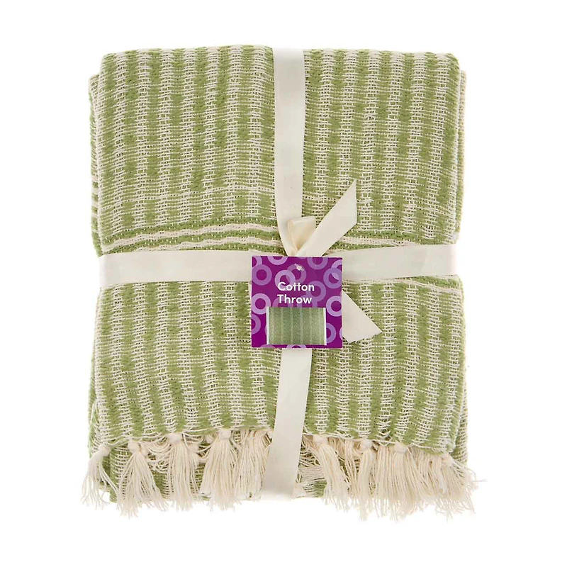 Crafted from 100% high-quality cotton, these throws are soft, breathable, and durable, ensuring they provide both comfort and style for years to come. The assorted striped patterns offer a classic yet contemporary look, featuring a variety of color combinations to suit any decor. Choose from a soothing green and white stripe or a subtle white with pink stripes, each bringing a unique charm to your home.