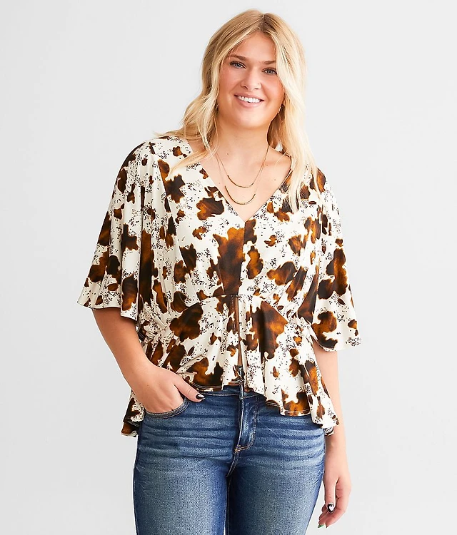 Cow Print Split Peplum Top