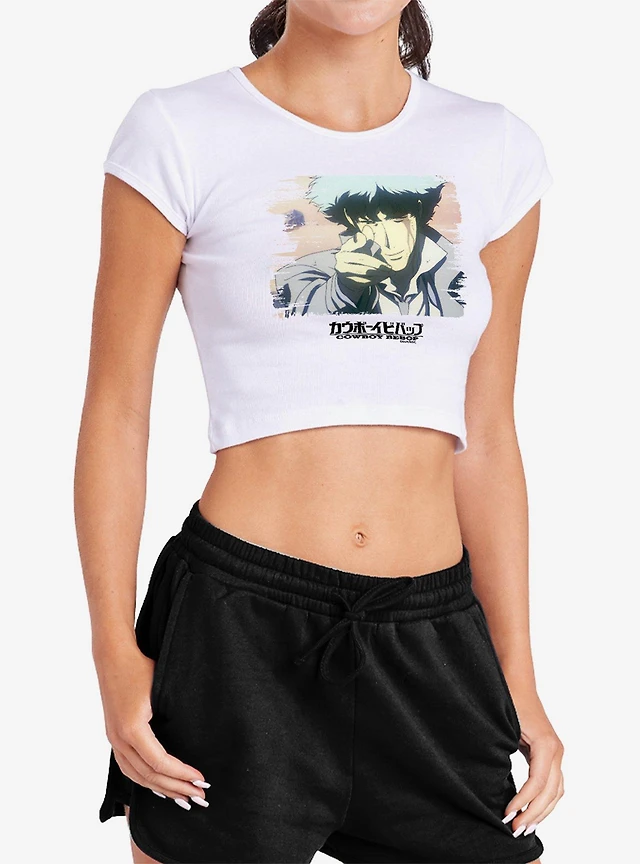 Cowboy Bebop Spike Spiegel's End Cap Sleeve Baby Rib Women's Crop Top