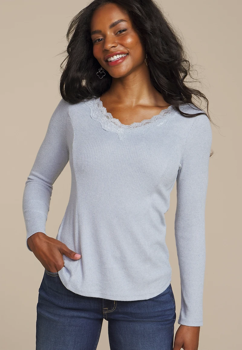 Cozy Lace Trim V Neck Top in Chattanooga, TN