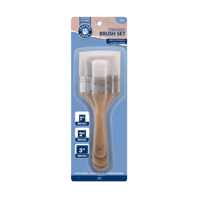 Crafter's Closet Straight Edge Paint Brush Set, 3 ct