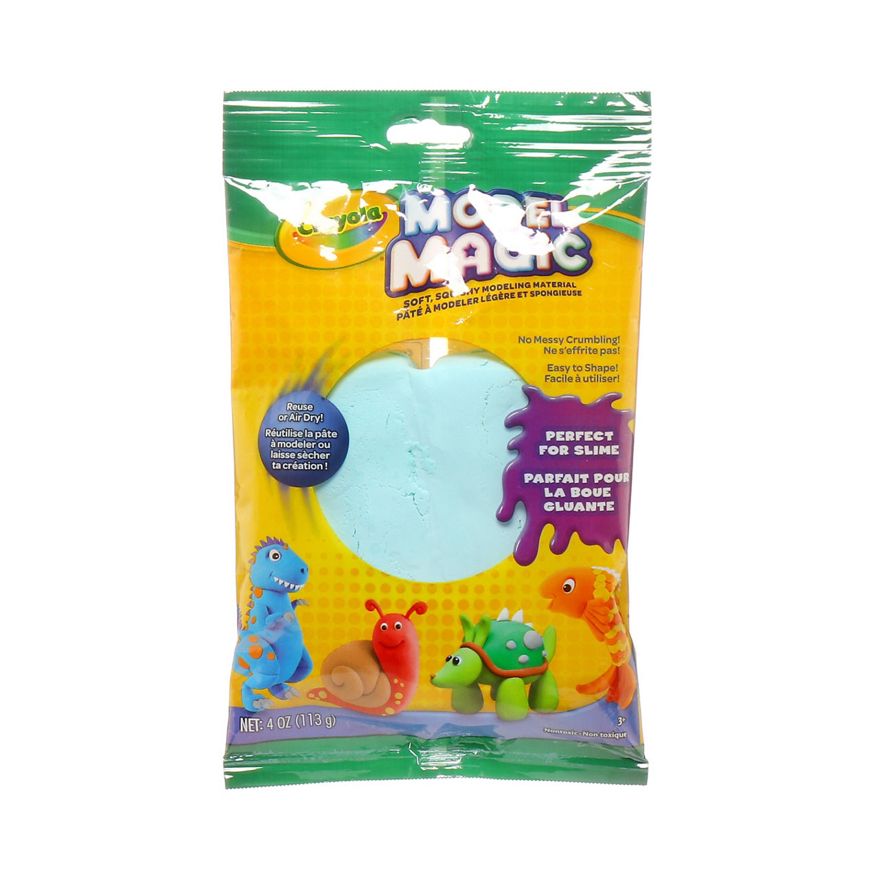 Add a new dimension to creative art projects with Crayola Model Magic in Aquamarine! Model Magic is a soft, easy-to-use modeling material that lets you and your kids create colorful, keepable art. Plus, it's great to have on hand for slime supplies. Use this 4oz package to bring your daydreams to life! Unlike traditional modeling clay, which can be tricky for young artists to mold, Model Magic is designed for ease of use. It usually air-dries within 24 hours. When dry, Model Magic is lightweight and flexible. It makes a great craft activity for kids. It is safe and nontoxic, ideal for ages 3 and up.