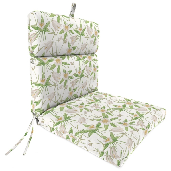 Enhance your patio with this Cream Floral Outdoor Chair Cushion with Ties. Featuring a high back and seat cushion, it combines comfort and style with durable fabric and an elegant botanical design. Chair cushion measures 44L x 22W x 4H in. Crafted of polyester with layered polyester fiber fill Features a floral pattern Hues of green, yellow, gray, and cream Reversible design Fade resistant with up to 500 hours of UV protection Water, stain, mold, and mildew resistant French edge finish on each corner Fabric corner ties to secure to chair Attached hanging loop for convenient storage Safe for outdoor use Care: Spot clean with water and mild soap. This item is available at Kirklands.com only, not available in stores. Please note: this item cannot be shipped to APO/FPO addresses.