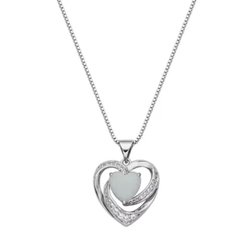 Created Opal and White Sapphire Heart Necklace in Rhodium Plated Sterling Silver in Chattanooga, TN