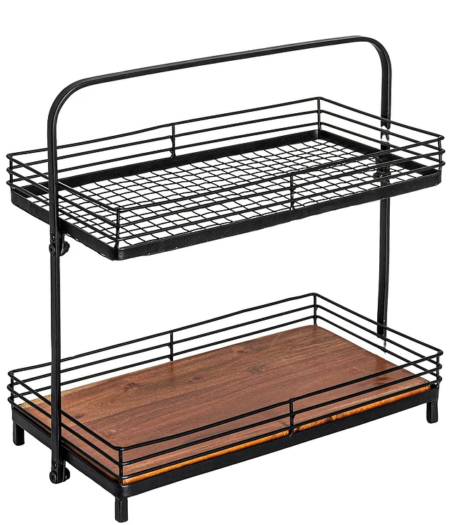 Hello Honey® 18" Decorative Metal 2-Tier Tray with Handle