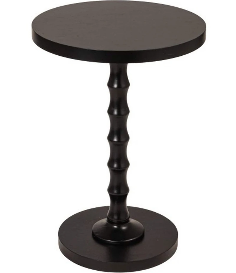 From Creative Co Op, the Black Spindle Side Accent Table features: The striking design features a smooth, round tabletop and a sculptural spindle base, all finished in a sleek black for a sophisticated, monochromatic look. Crafted for both durability and style, this versatile piece works perfectly as a side table, accent table, or nightstand. Its unique silhouette adds a touch of modern charm, while its compact size makes it ideal for small spaces. Elevate your living room, bedroom, or reading nook with this chic and functional side table. Sculptural spindle base adds visual interest and elegance Compact size makes it perfect for small spaces or versatile placement Ideal as a side table, accent table, or nightstand for any room Sleek all-black finish for a bold, modern look Approx. 17" L x 17" W x 24.5" H Spot clean Imported.