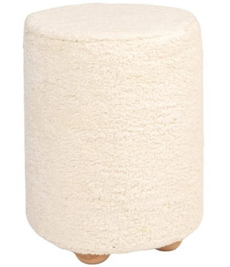 From Creative Co Op, the Round Sherpa Upholstered Pouf with Pine Wood Feet features: This Sherpa upholstered pouf with pine wood feet will add comfort and flair to any space. The pouf is spherical and has a cream Sherpa upholstery cover that will go with any decor. The cover is composed of cotton, which makes it smooth and long-lasting. A cozy and chic pouf that features a Sherpa upholstered cover and pine wood feet Embrace farmhouse, rustic, or cozy aesthetics effortlessly with the cream-colored upholstery and natural base of this pouf This pouf is a multifunctional accent piece, perfect for use as extra seating, a footrest, or even a stylish side table Quick and tool-free assembly for convenience; the pouf is thoughtfully crafted with a base of pine and other wood materials, a cover of cotton, and a filling of polyurethane Providing a comfortable and functional addition to home or office Dimension approx. 16" W x 21" H Capacity approx. 330-lbs. Imported.