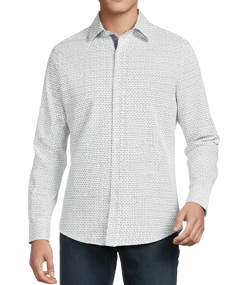 Cremieux Premium Denim Micro Square Geometric Stretch Long Sleeve Woven Shirt