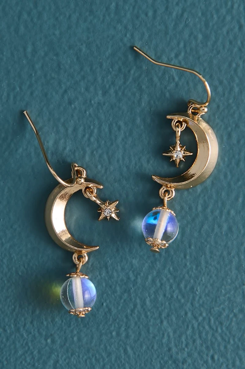 Crescent Moon Blue Aura Bead Dangle Earrings in Chattanooga, TN