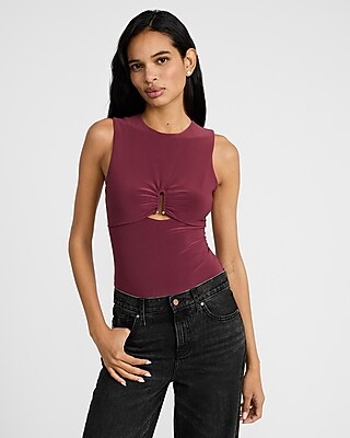 A bodysuit perfect for your next night out, this sleeveless style features a crew neckline and a cutout with u-wire hardware for a ruched effect.