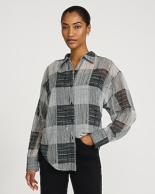Crinkle Chiffon Plaid Boyfriend Shirt