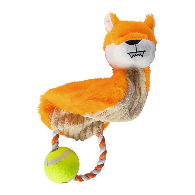 crinkle critter rope & tennis ball dog toy 3.5in x 15.8in