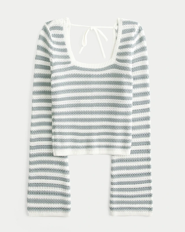 Crochet Wavy Striped Square Neck Mini Sweater Dress