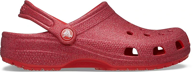 Be comfortable in your shoes with the Crocs Women's Classic Glitter Clog Shoes. These lightweight shoes are cushioned and flexible for all-day comfort and lasting durability. The all-over glitter creates a shiny style that shows off your personality, while the ventilation ports help keep your feet cool and dry.