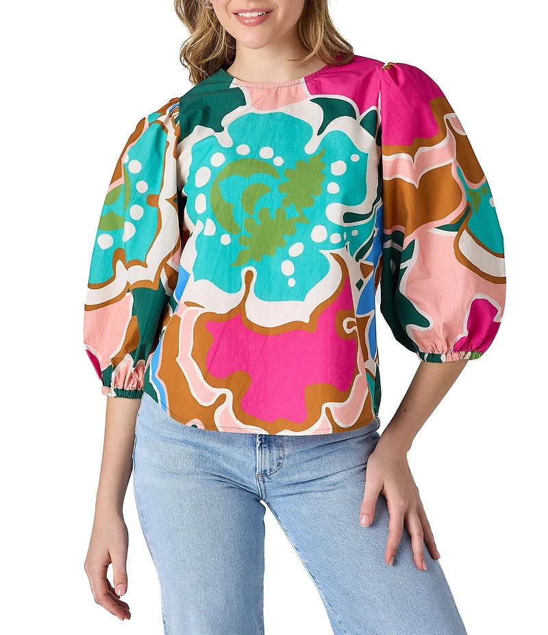CROSBY by Mollie Burch Gia Floral Print Balloon Sleeve Crew Neck Blouse in Chattanooga, TN
