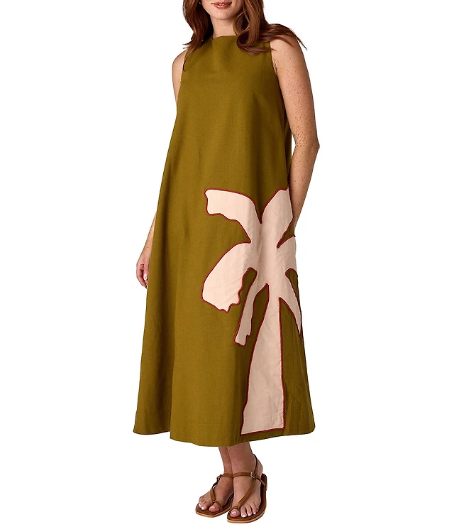 CROSBY by Mollie Burch Owens Palm Tree Shift Maxi Dress
