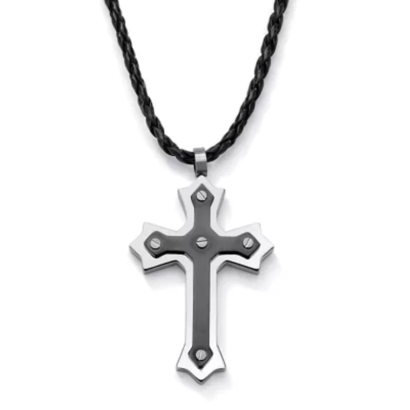 Cross Pendant and Cord Necklace in Black Ion-Plated Stainless Steel in Chattanooga, TN