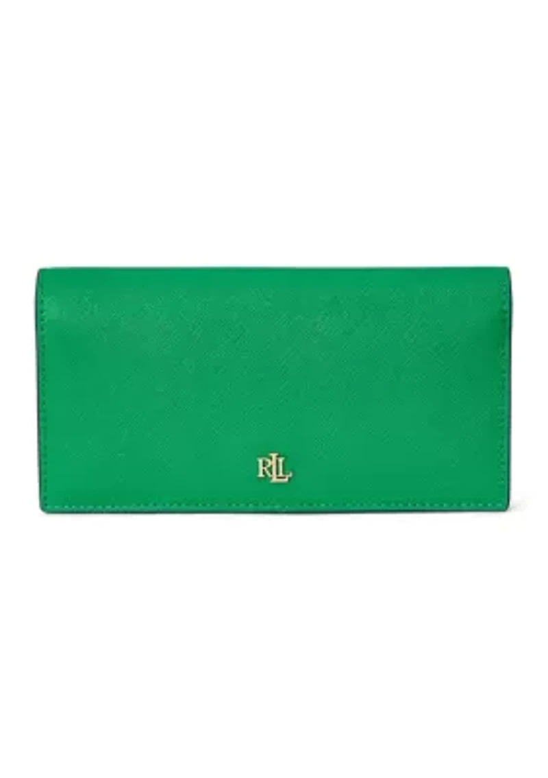 This slim wallet from Lauren Ralph Lauren is crafted with crosshatch leather and features multiple pockets for ample storage. It’s finished with Lauren's signature “LRL” hardware. Snapped closure LRL metal logo at the front. Zip pocket at the exterior 15 credit card slots, one ID window and four slip pockets at the interior 3.75" H x 7" L x 0.75" D Weighs approximately 5 oz Lining is made with polyester and recycled polyester Shell: leather Interior: polyurethane Lining: polyester Clean by a leather specialist Imported