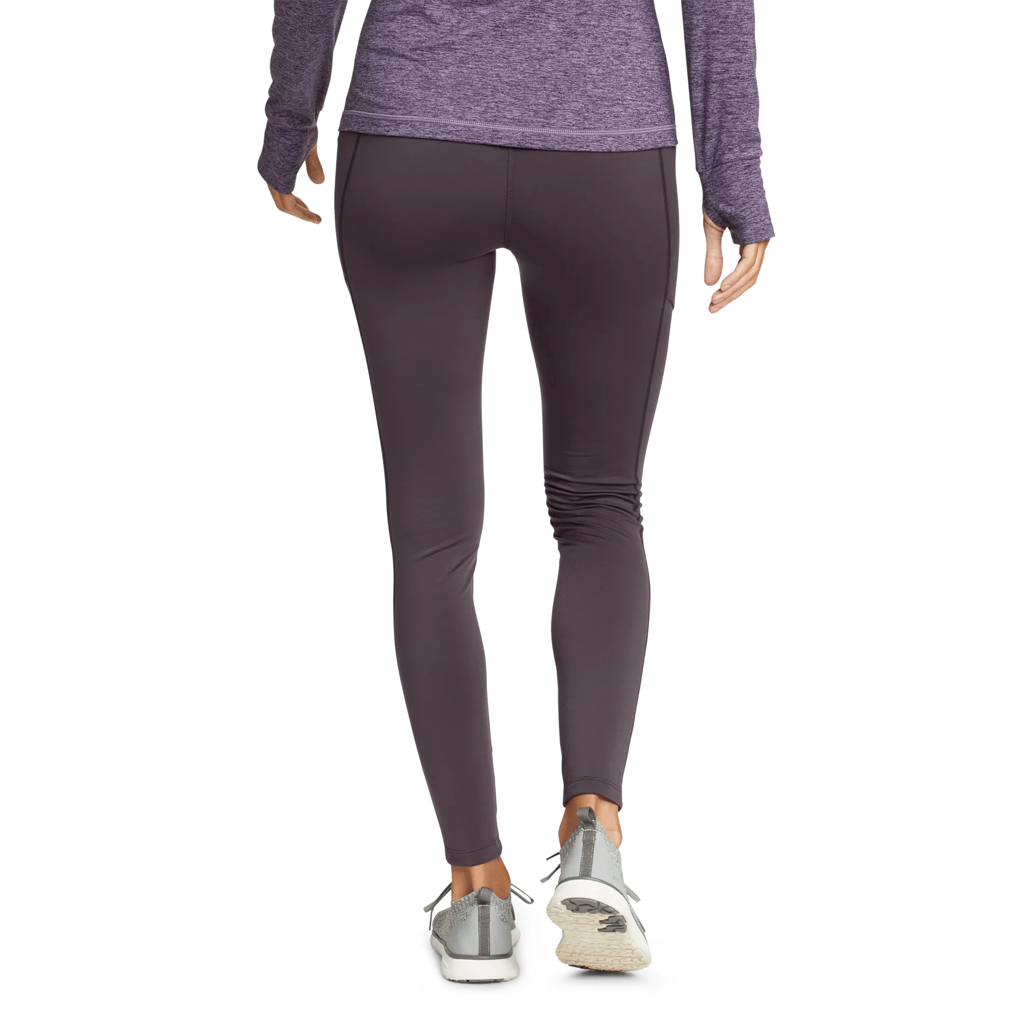 The newest generation of our best-selling Trail Tights, these high-rise leggings are better than ever. Like the original Trail Tights, they feature moisture-wicking, sun-protection, and odor-control technologies, plus a Power Mesh waistband. But these are built in our Crossover premium brushed fleece fabric for added warmth in cool weather. We've also added significant new features, from a high waist with drawcord adjustment to a chemical-free gusseted crotch that enhances mobility and fit.