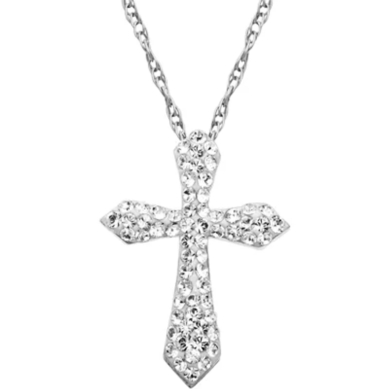 Let your faith shine for all to see in this cross pendant covered with sparking clear crystals.