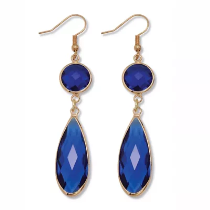 Add a touch of romance to any look with these crystal drop earrings. The striking contrast of faceted crystals against elegant goldtone hardware creates a bold and modern aesthetic. These vintage-inspired earrings pair well with any outfit and are sure to catch compliments. 2 inch length.Main Stone: 2 Special Faceted Cut Crystals, 30 mm x 12 mm; 2 Round Faceted Cut Crystals, 12 mm x 12 mmGoldtoneDimensions: 12 mm wide x 53 mm long x 7 mm highIncludes gift box and drawstring pouchGoldtoneDimensions: 12 mm wide x 53 mm long x 7 mm highIncludes gift box and drawstring pouch 2 Euro wire closure, 4 Polished finish Warranty available China Imported Product Specifications 0.75 in x 2.09 in x 0.47 in Material & Care Gold-Tone Metal, Gold-Tone Clean with a soft cloth.