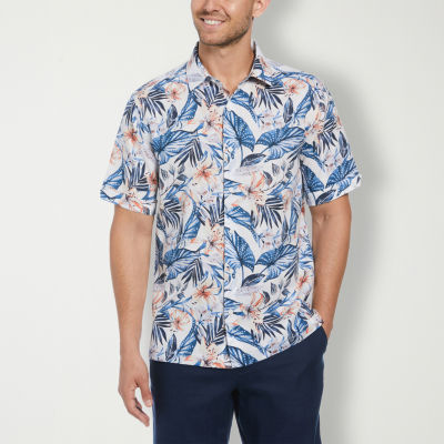 Cubavera Large Palm Print Mens Short Sleeve Regular Fit Button-Down Shirt