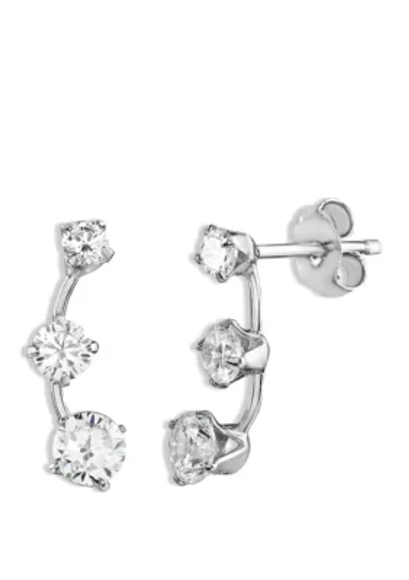 Crafted from sterling silver, these stud earrings by Belk Silverworks are accented with 3 cubic zirconia on a curved post. Post back earring Polished finish Prong setting Imported Belk Exclusive Product Specifications 14 mm Length Number of stones: 6 Material & Care Sterling silver Clean with a soft cloth
