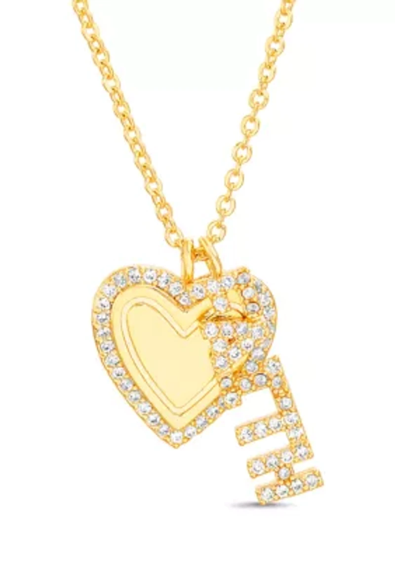Cubic Zirconia Heart Faith Charm Necklace