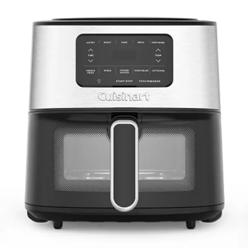 Cook everything from simple snacks to main meals with the versatile Cuisinart® Basket Air Fryer. This countertop cooker lightens up fried foods with fast and even hot-air-powered cooking — using little or no oil — for making healthy meals with the crispy crunch you love. Five popular pre-programmed settings, a toss notification to flip food mid-way through cooking, and convenient viewing window make it easy to air fry, roast, bake, broil, and warm food with delicious results every time. Lighten up your menu with the convenient air fryer that does more for mealtime!