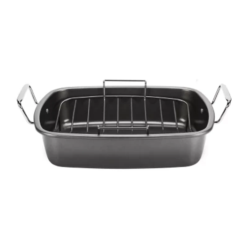 Ideal for turkey dinners or large roasts, this collection provides the perfect solution for everyday family meals, parties, and holiday celebrations. Lifting is made safe and easy with sturdy construction and wide grip handles on each roaster pan. Each fully non-stick design makes cleanup convenient. Make and bake holiday classics or prepare family favorites any time of year with these versatile must-haves.